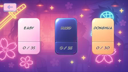 To play Otaku Quiz, choose a difficulty level that suits your anime expertise. You’ll face various questions where you must identify an anime from a picture or a song. Simply click the most accurate answer from the four options provided. On completion, enjoy your results with a special shout-out from an adorable anime girl!